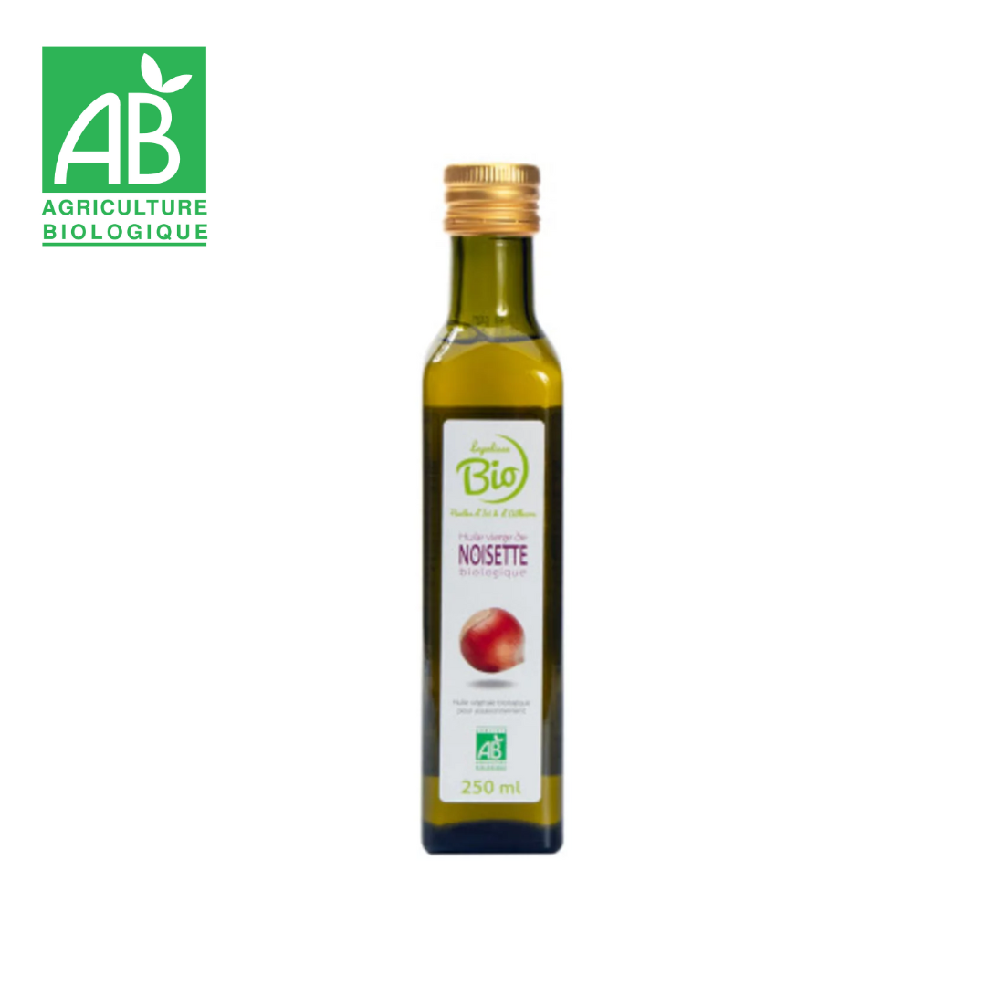 Composition : 100 % Huile vierge de noisette biologique* – peut contenir des traces d’autres fruits à coque et de graines de sésame.