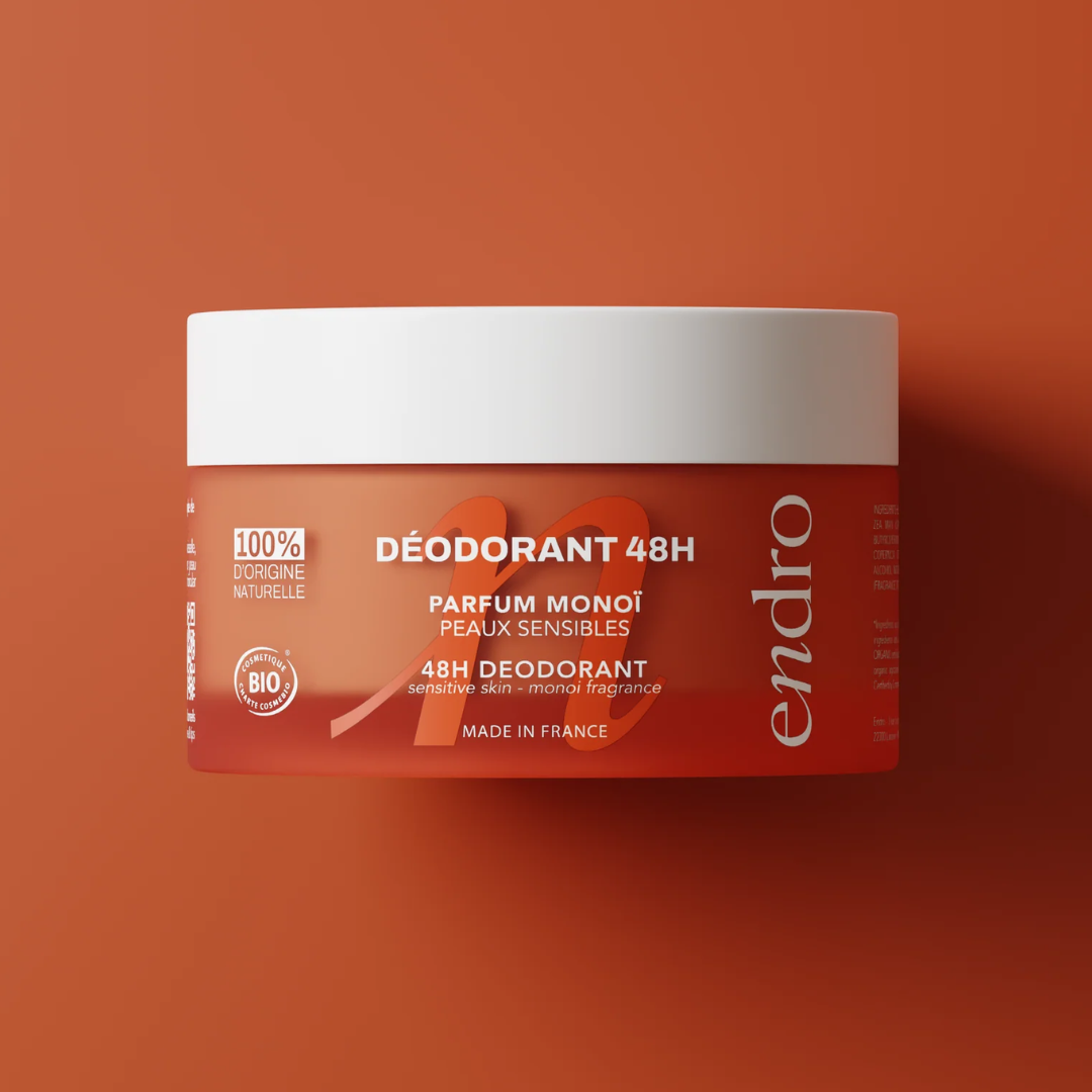 Sans bicarbonate ni huile essentielle ce déodorant 100% d’origine naturelle au parfum Monoï lutte efficacement contre les bactéries responsables des mauvaises odeurs. Sa texture baume vous offre 2 à 3 mois d’utilisation car une petite noisette par aisselle suffit !